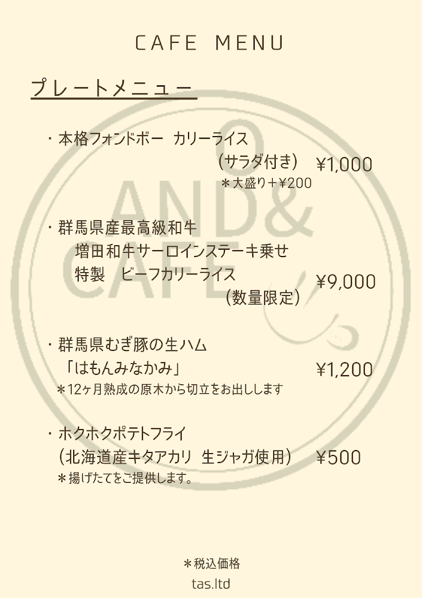 ANDo&CAFE tas+minakami Menu
